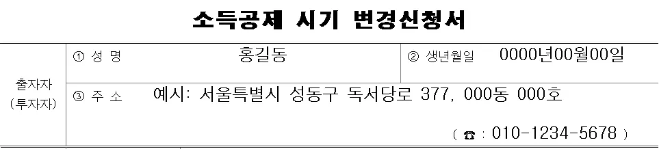 해당 신청서는 소득공제 시기 변경 신청시 발행기업(투자한 회사)으로 제출해주세요!