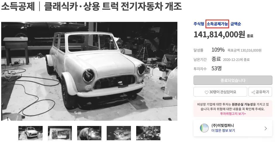 투자형 크라우드펀딩에 참여하여 소득공제 가능 기업에 투자를 해주셨나요?