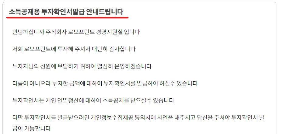 투자년도에 [투자확인서]를 발급 받지 않으시면 소득공제가 불가합니다.