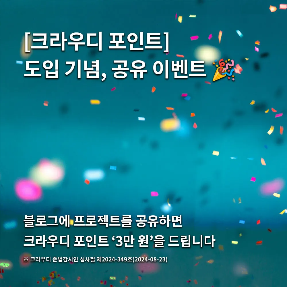 본 이벤트는 선착순 30명이 끝나는대로 종료 됩니다. 다만 그 전에도 크라우디 사정에 따라 조기 종료될 수 있습니다.